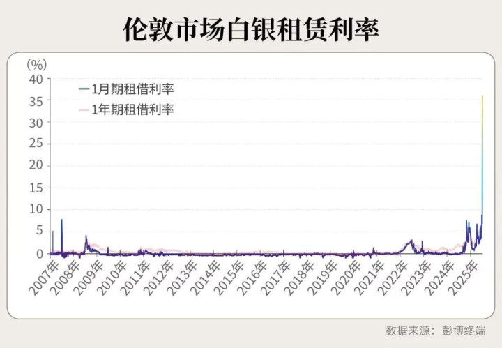 伦敦银的1月租赁利率一度突破35%,更夸张的是,当时隔夜借贷的年化利率甚至一度冲破100%,